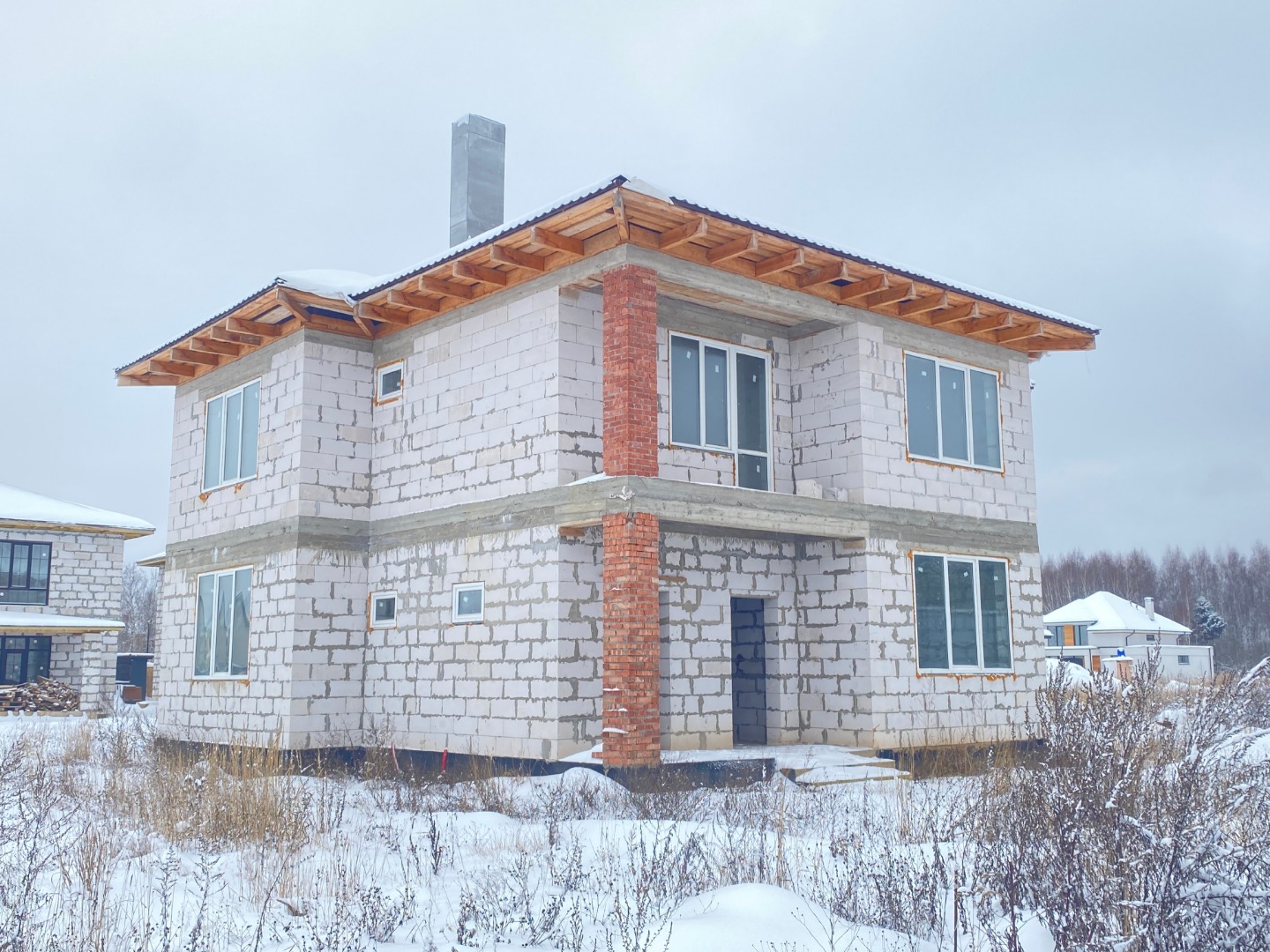 Новый двухэтажный дом под ремонт в современном и очень удобном по транспортной доступности коттеджном поселке «Валенсия» в 25 км от МКАД