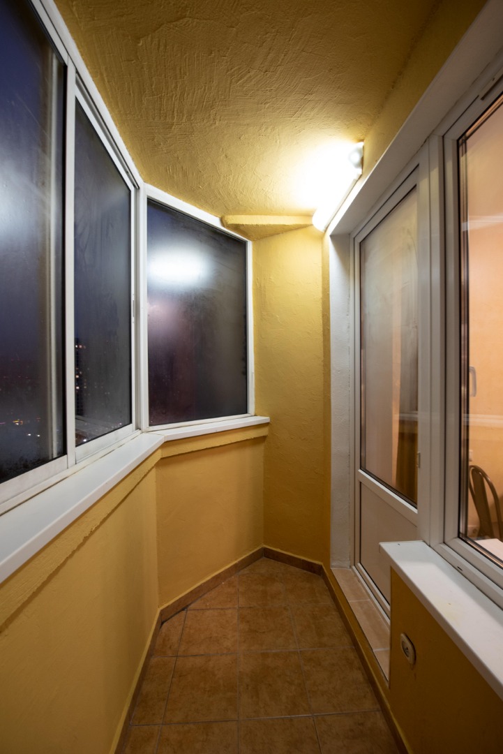 Качественные итальянские межкомнатные двери. Имеется лоджия с раздвижными стёклами.