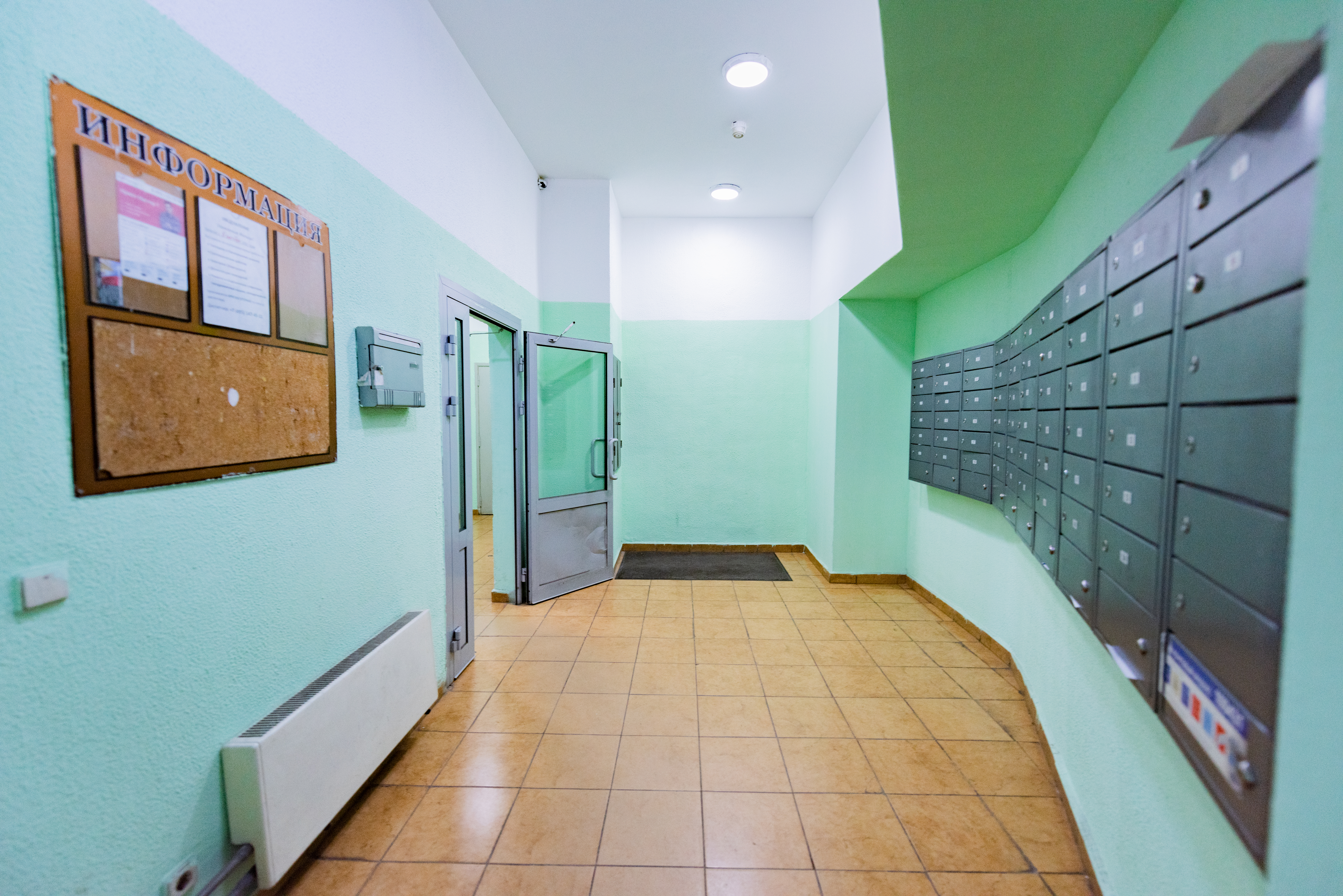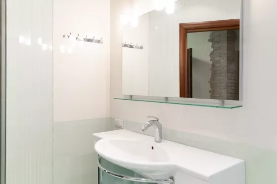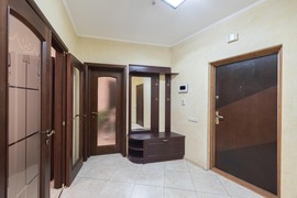 На полу в обоих комнатах уложено пробковое теплое покрытие. Прихожая, коридор, санузлы и кухня – керамогранит. В комнатах хлопковая покраска стен, в остальных помещениях на стенах фактурная штукатурка с восковым покрытием. Все стены в квартире можно мыть.