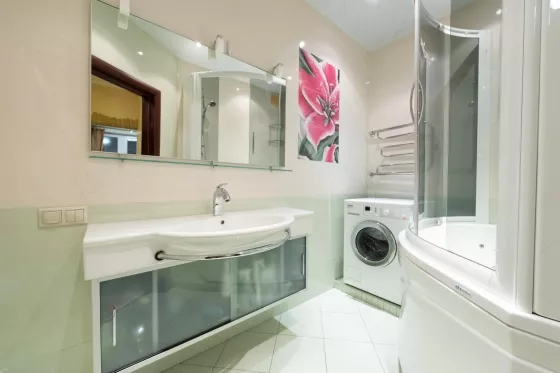 В квартире выполнен качественный ремонт, удобная планировка, современная и качественная электрика и системы водоснабжения, стоит дорогая итальянская сантехника, стиральная машина Miele, джакузи, хороший мебельный гарнитур в спальне, кухня-хамелеон с доводчиками, печь Bosch, холодильник Liebherr premium. На кухне и в ванной комнате электрические тёплые полы. Имеется бойлер ГВС.