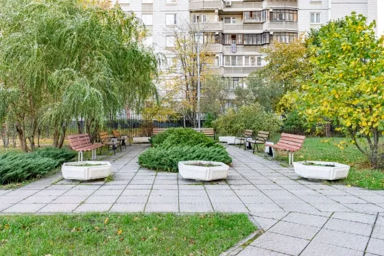 Жилой комплекс располагает достаточным количеством парковочных мест: есть как внутренняя парковка, так и прилегающая к нему внешняя за шлагбаумом. Своя детская площадка и зона отдыха для взрослых.
